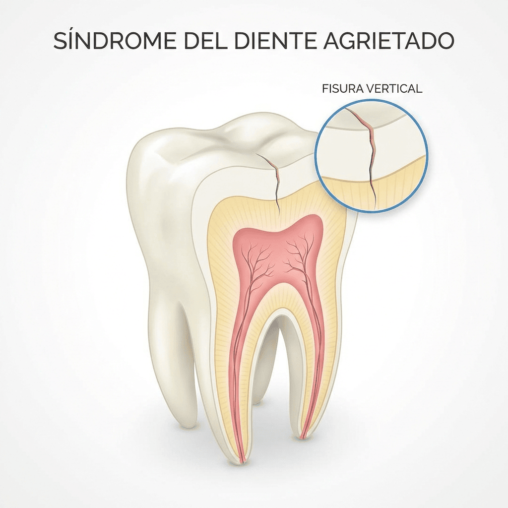 Hay dolores dentales que son clarísimos: te duele con frío, con calor, con dulce… y la caries aparece en la radiografía como un anuncio luminoso. Pero luego está ese otro dolor que te vuelve loco: te duele al morder, a veces “a ratos”, no siempre puedes señalar el diente exacto y, para rematar, la radiografía parece no decir nada. En esos casos, uno de los sospechosos habituales (y más infradiagnosticados) es el síndrome del diente fisurado.